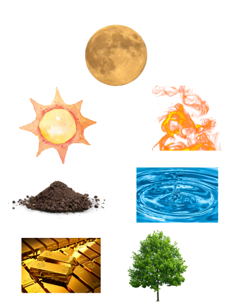 Specifically, they start with week on Monday with the ever important moon (月), recalling the significance of the lunar cycle in their time keeping system. They end with the sun (日) on Sunday as well. The five days in between are each represented with one of the ancient five spiritual elements: fire, water, wood, metal (gold), and earth in that order.