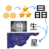 晶 (jīng), (a triplicate of 日 ‘sunshine’) that refers to something twinkling or sparkling + 生 (shēng) which generally refers to being born or giving life but here may just be a phonetic reference.