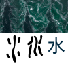 A series of currents flowing downstream (original pictograph). The older pictographs are a little more obvious than the modern character. 🤷♀️ May appear as 氵or 氺 as a radical in some compound characters