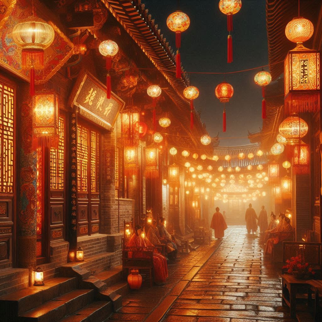 Lunar New Year approached with the end of another year, as thousands of doors and ten thousand households throughout Línān City4 were brightly decorated with lanterns and colorful banners. All of the streets and alleys shone as bright as shooting stars; the same was true at Tài Xué in the northern part of the city.