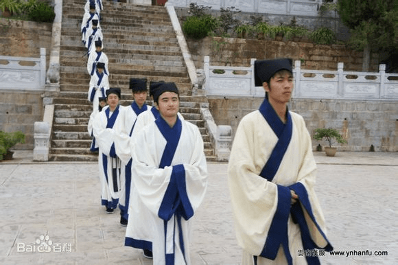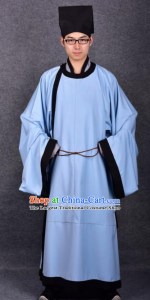 “宽大的青布儒衣” – There are variations in Confucian robes, but it might have looked something like this