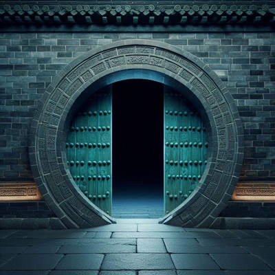 There were lanterns and fireworks10 all around overflowing with color and casting light, but Sòng Cí did not glace around. Focused, he merely lowered his head and quickly strode forward. He passed the dormitories one after another and then on through the shooting grounds where he practiced archery on weekdays, until he reached the southeast corner of Tài Xué. Here, in front of him, stood a wall made from greenish-blue bricks broken only by a single moon gate. Inside the door, it was completely black without a single thread of light.