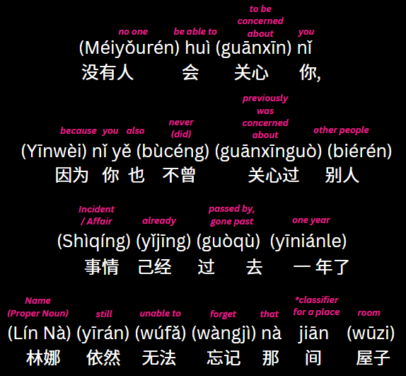 没有人 会 关心 你, 因为你也不曾关心过别人.